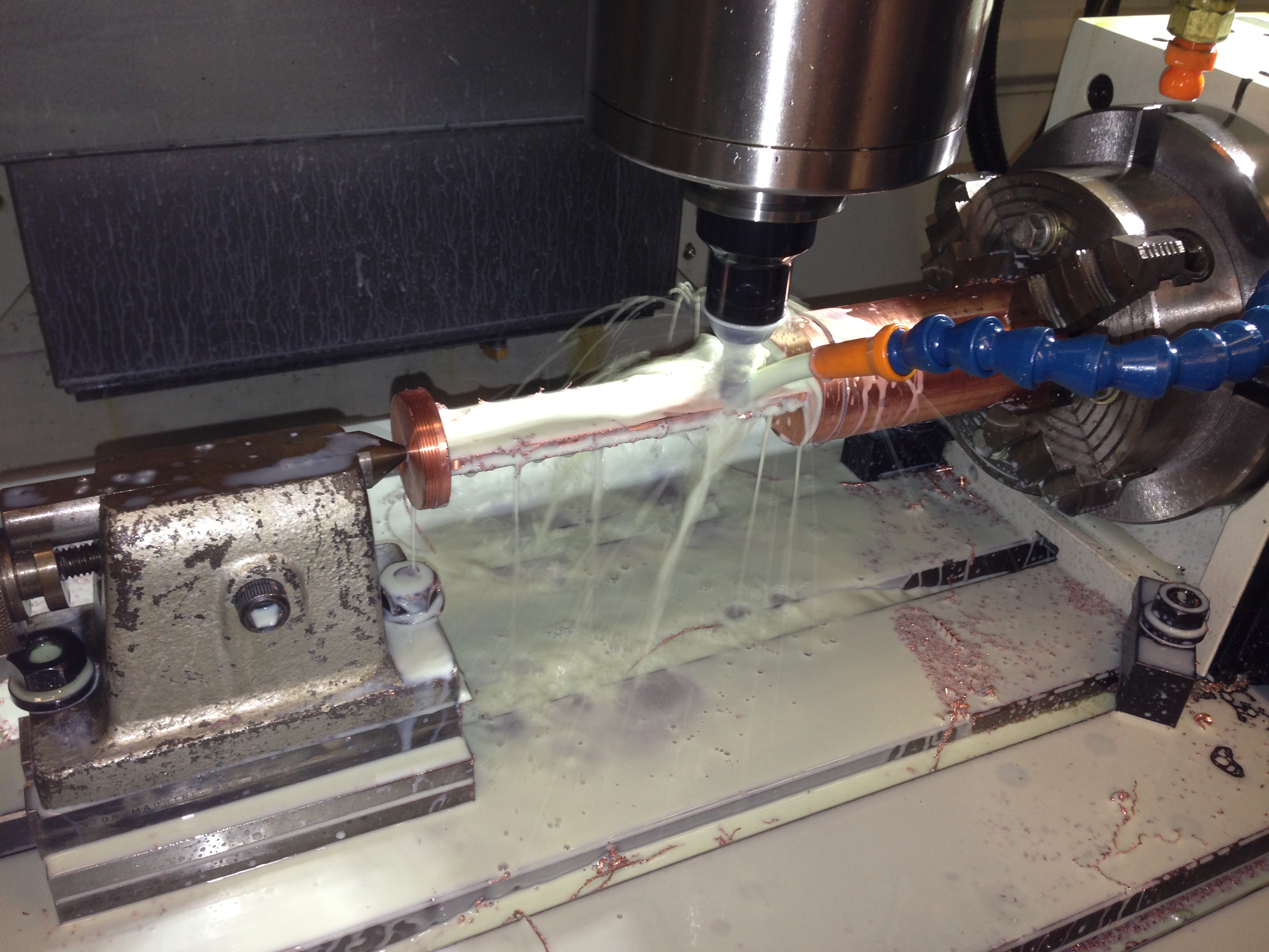 Here is a picture taken some time ago of the cold finger for our diltuion fridge taking shape (photo by Dharam Patil):