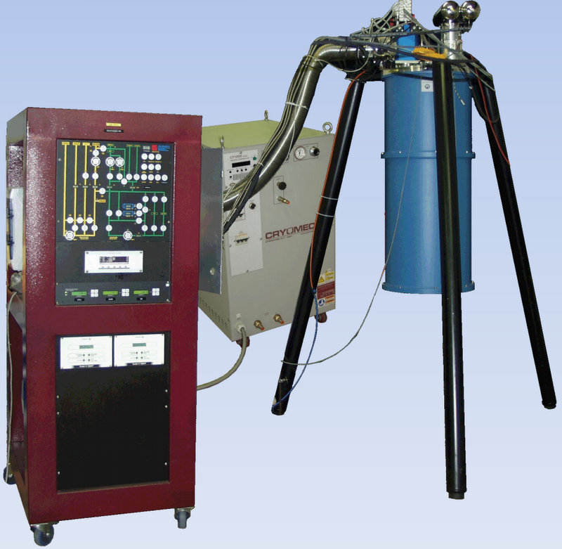 These machines are of the new cryogen-free variety meaning they operate like your kitchen fridge but much colder. They do not need a new supply of liquid helium every few days, cutting out a major hassle and expense from their operation. The samples can be loaded into a cold fridge using a top-loading insert. Two separate experiments can be performed in one fridge at the same time. The fridges feature high field magnets, one of them a vector magnet with a rotating magnetic field.