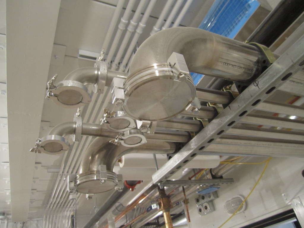 Pump room. Acoustically isolated doors and pump lines coming out at the top.
