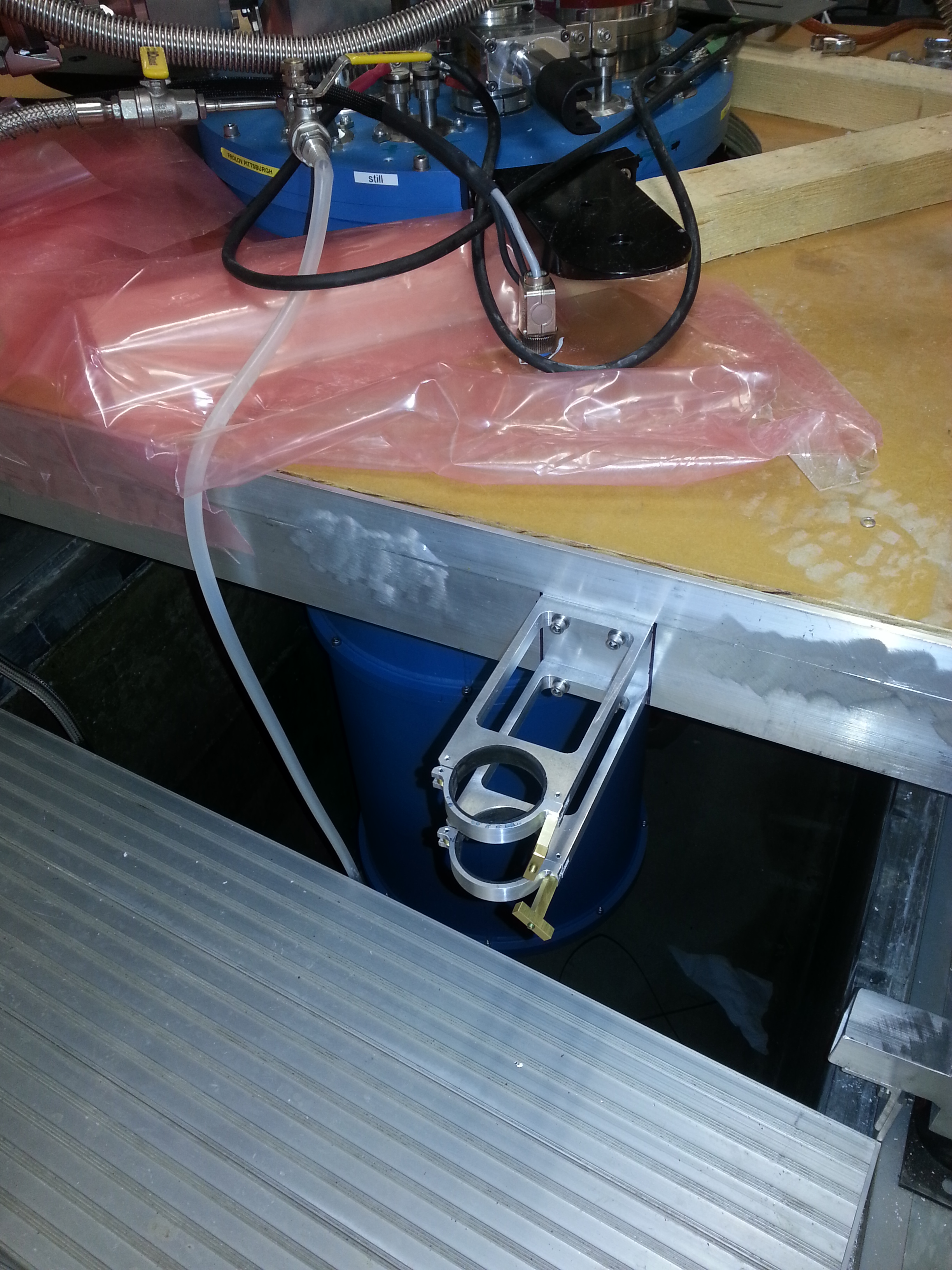 Well, our fridges came without probe holders. Probes are very useful for quick sample turnaround. They are long sticks which can be used to load samples into a cold fridge thereby shaving off days from the sample exchange cycle. The probes are long and awkward to handle. So we talked to our machine shop in Physics at Pitt to add a probe holder to the system. And they came up with a nifty design: