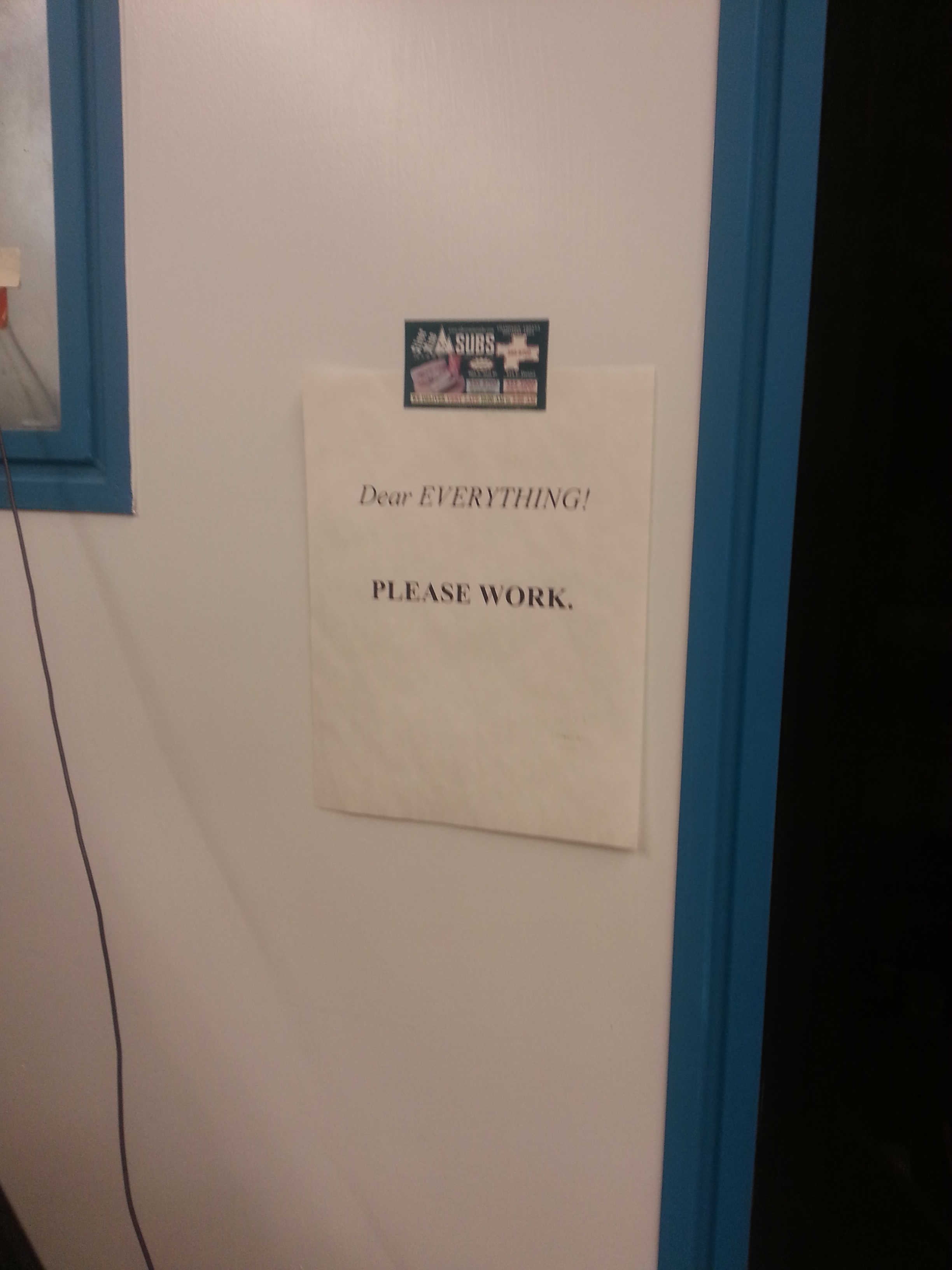 Anyhow, when I visited my old lab in Urbana last year my prayer was still attached to the wall. Only it was the second one. To the God of Everything.
